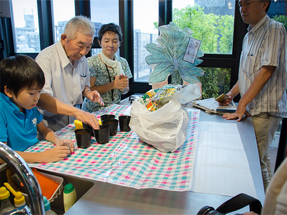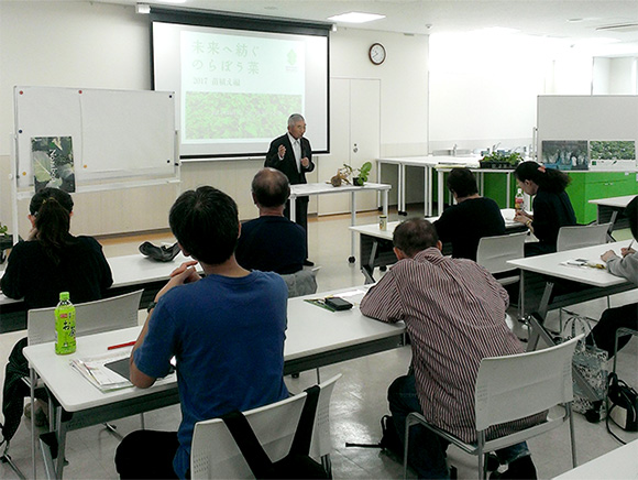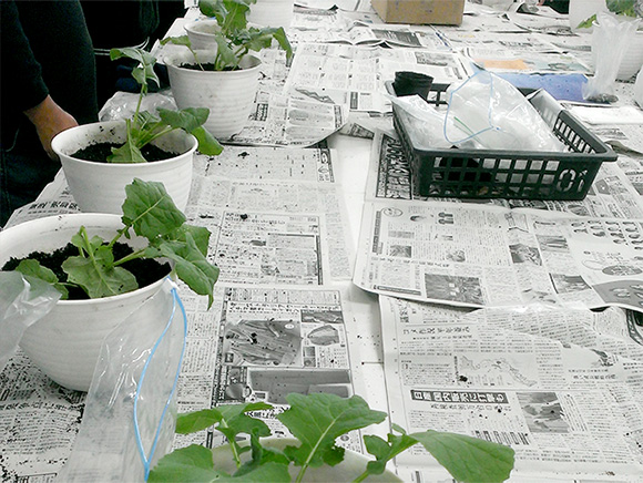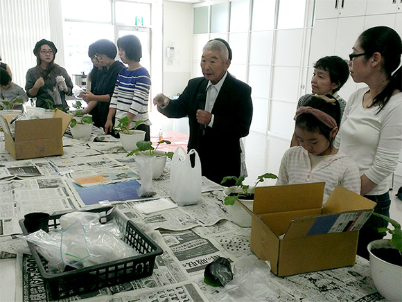 講師に菅のらぼう保存会 会長 髙橋孝次さんをお招きして、生産者から直接「のらぼう菜」の育て方や地域の歴史について学べる貴重な機会となりました。ベランダで育てるためにポットに種をまいたり、苗植えをしていきました。